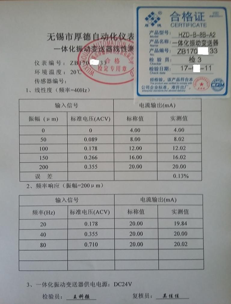 HZD-B-8B无锡厚德振动探头 HZD-B-8B一体化振动变送器技术参数: