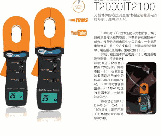 T2000是专为用回路法测量接地回路的接地电阻测试的仪器,常用于对现场接地电阻的快速测量和定性判断,可提高工作效率。改仪器内部有两个环形线圈,一个电压线圈和一个电流线圈,电压线圈产生电动势E,这样在测量回路将产生一个环路电流I,并被仪器测量到,从而依据欧姆定律计算出回路电阻R。