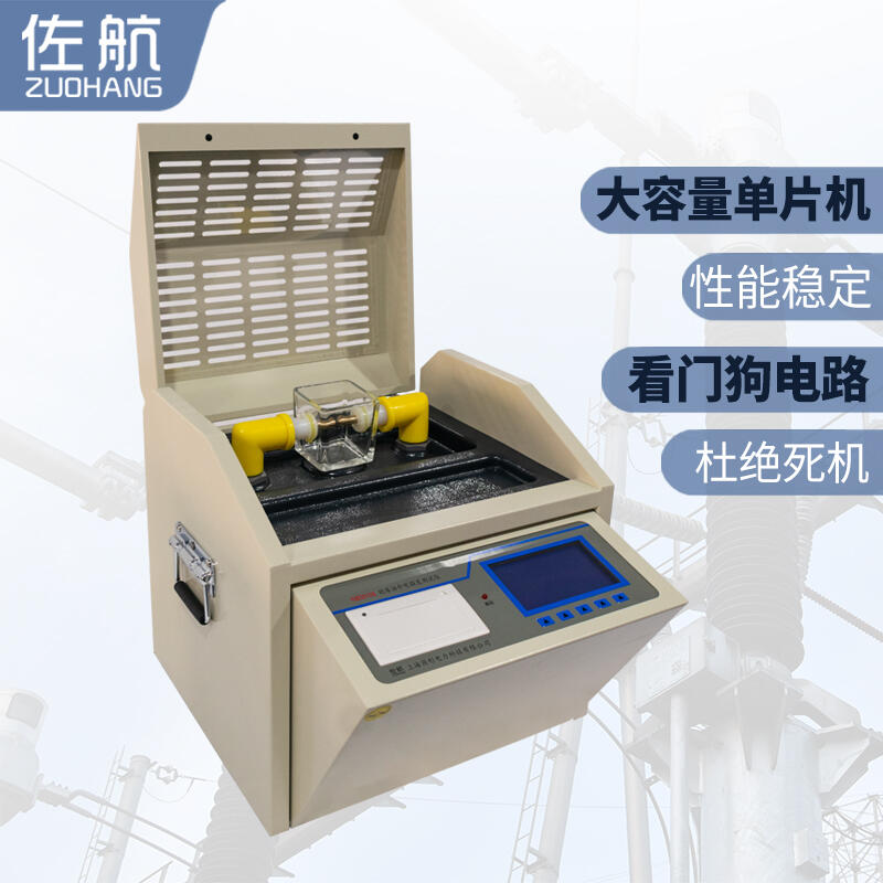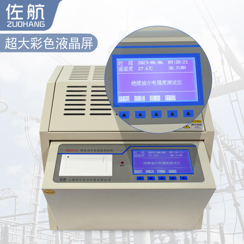 佐航YHD2010S全自动绝缘油介电强度测试仪是我公司全体科研技术人员,依据国家标准GB507-1986及行标DL/T846.7-2004的有关规定,发挥自身优势,经过多次现场试验和长期不懈努力,精心研制开发的高准确度、全数字化工业仪器。为满足不同用户的需求,该系列仪器可分为单杯三杯及多杯等型号。仪器操作简便,造型美观大方。由于采用了全自动数字化微机控制,所以测量精度高、抗干扰能力强、安全可靠。