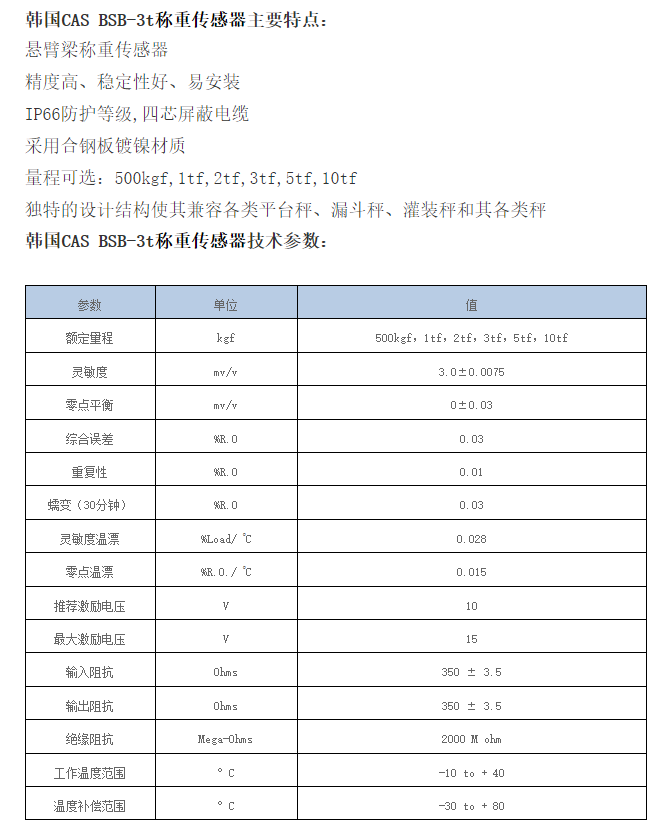 BSB系列是韩国CAS品牌的悬臂梁式称重传感器属于工业称重设备中常用的传感器型号。 ?
