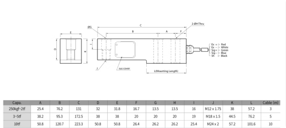 2.大容量:该传感器具有较大的称重范围,最大承重量可达10吨,适用于大型物体的称重。