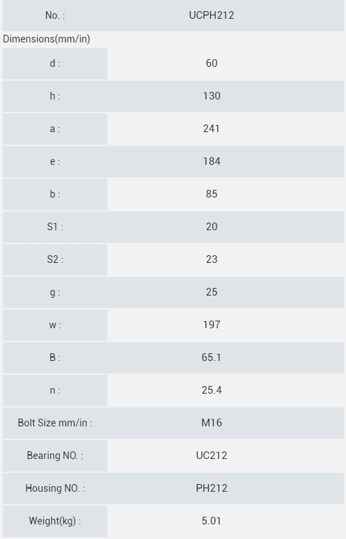 UCPH212-36 2-1/4 60 130 235 184 85 23 19 25 197 65.1 25.4 M16 5/8 UC212-36 PH212 4.8