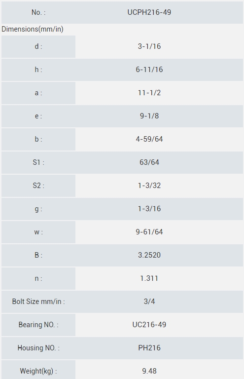 UCPH216-50 3-1/8 80 170 290 232 125 28 23 30 253 82.6 33.3 M20 3/4 UC216-50 PH216 8.0