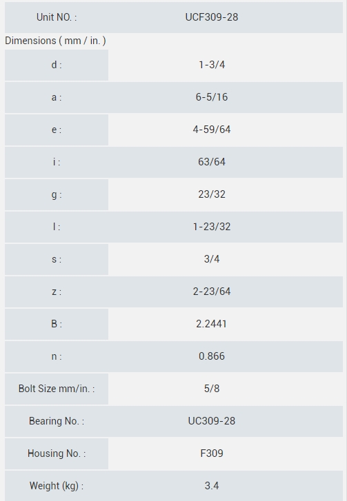 UCF309-26 1-5/8 45 160 125 25 18 44 19 60 57 22 M16 5/8 UC309-26 F309 2.60