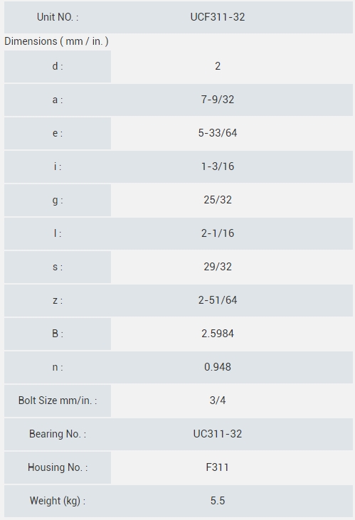 UCF311-32 2 55 185 140 30 20 52 23 71 66 25 M20 3/4 UC311-32 F311 3.30