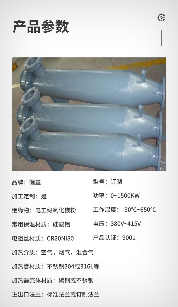 加热器壳体材质 | 碳钢或不锈钢 | ||
