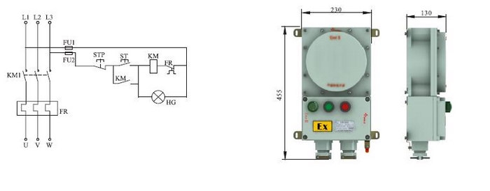 2、内装交流接触器,热继电器,自复位万能转换开关等。