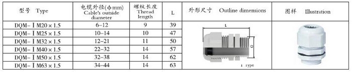 Ⅰ型:防爆标志Exe Ⅱ,防护等级IP66。采用工程塑料压制而成,具有较强的防腐和防水性能,适用于增安型外壳中作引入装置用。
