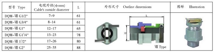 Ⅶ型:防护等级:IP54。采用ZL102铝合金压铸成型,采用机械式电缆夹紧装置。
