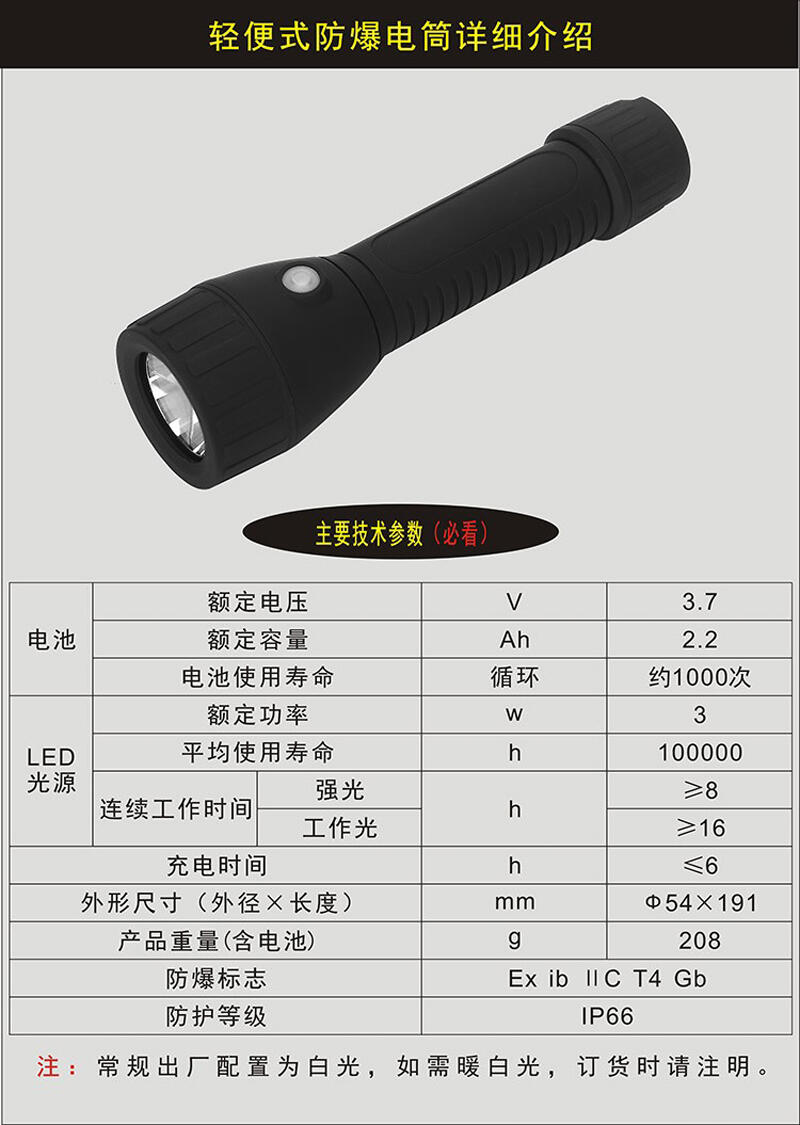 ◆智能控制:设有强光、工作光、频闪三种工作模式,采用智能芯片控制开关,强弱光可任意转换;智能型充电器设有过充、短路保护及充电显示装置,可延长使用寿命;
