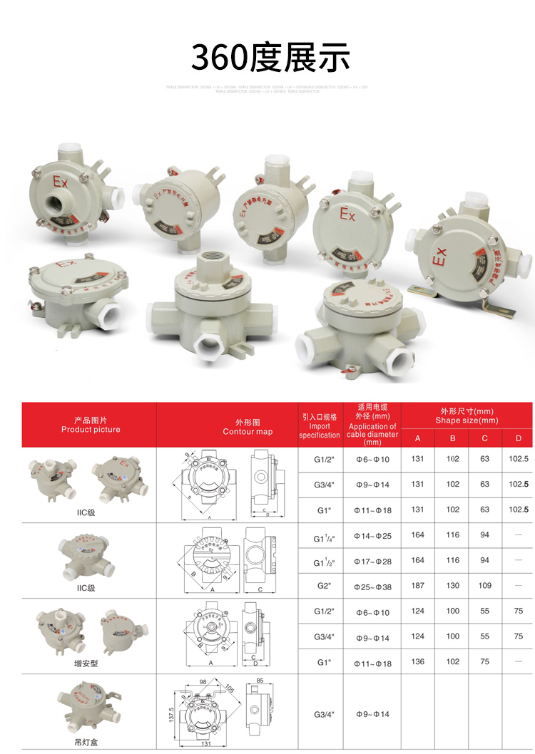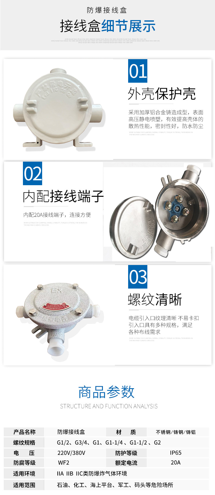 铸钢IICAH粉尘防爆接线盒耐腐蚀抗冲击力强静电喷塑表面