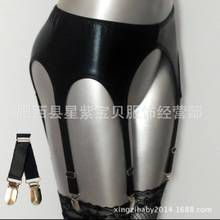 性感情趣内衣烫金仿漆皮革2cm 6根鸭嘴金属扣吊袜带厂家外贸批发