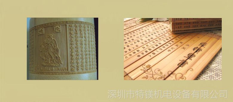 竹木制品:竹简、竹筒、鸟笼圈、笔筒、扇骨、牌匾等。选用常规机型即可,激光管功率80w或60w都可以,常规机型6090,竹筒、笔筒是正圆的也是椭圆的,都可以选配滚轴作业。材料大小不一,尽量为客户推荐适合的机器,常用机型9060升降机型,1390双头,激光管标配80w。