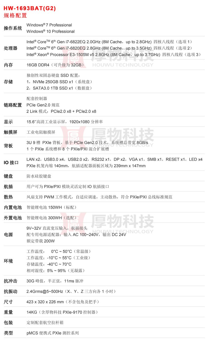 重量 | 14KG(含厚物科技PXIe控制器) | ||