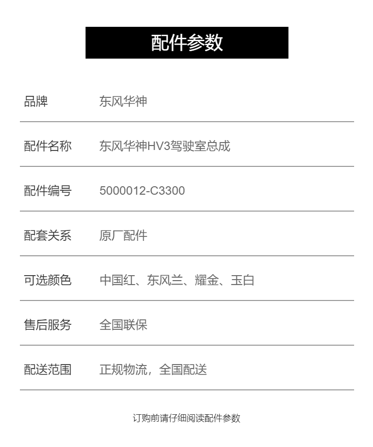 配件名称 | 东风华神HV3驾驶室总成 | ||