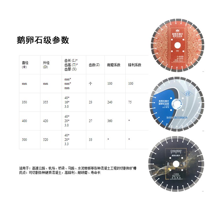 鹅卵石级优点 | 高锋利 耐研磨 寿命长 | ||
