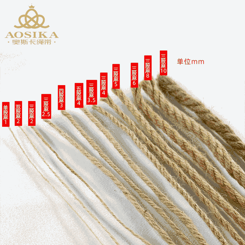 麻绳的规格有:1mm(单股)1.5mm(两股)2mm(三股)4mm(三股)5mm(五股)等各种粗细,材质天然,有淡淡黄麻味道,无化学污染。