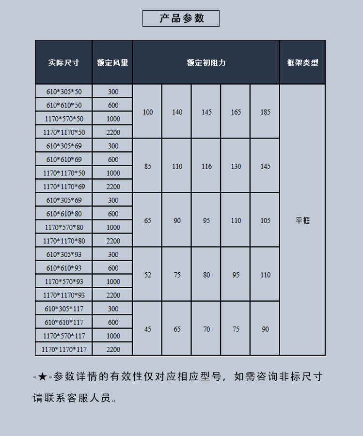 建议终阻力 | ≤500Pa | ||