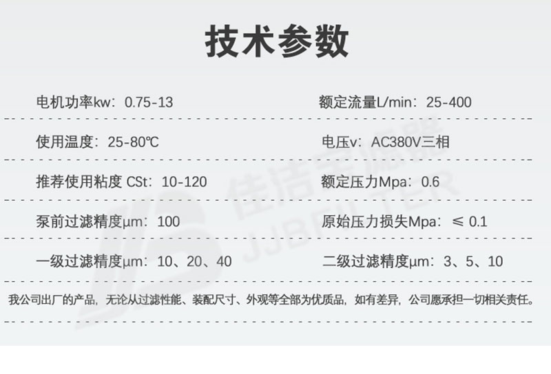佳洁宝滤器 LYC-J系列聚结分离滤油机 油中除杂 50L/min 噪声 | 32db | ||