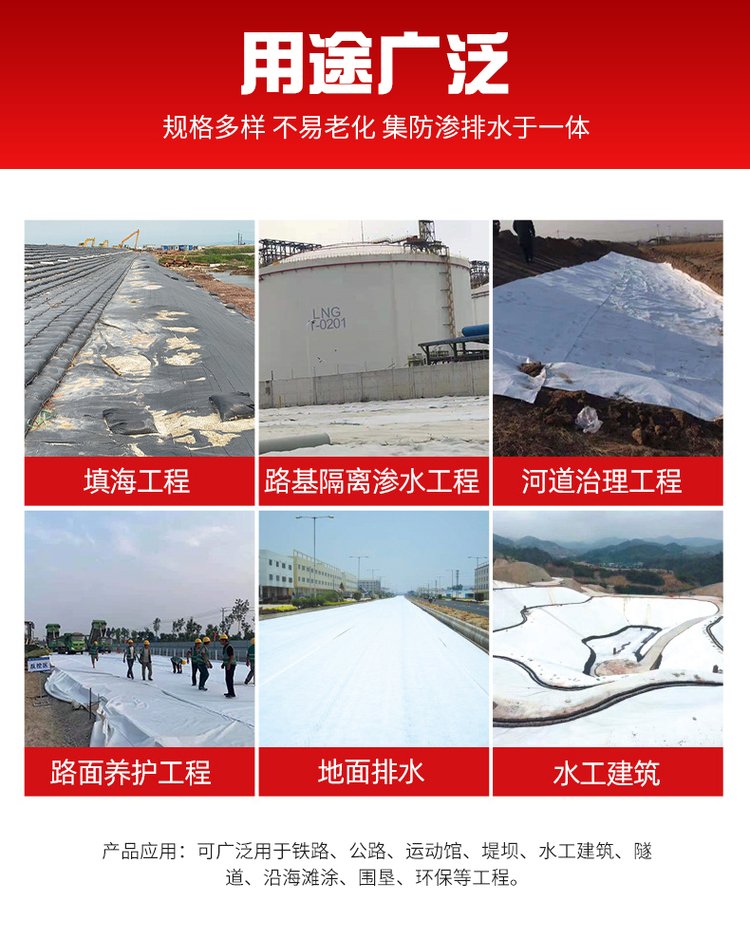 用途 | 公路、铁路、堤坝、围垦、隧道工程、垃圾填埋场、盐碱沼泽 | ||