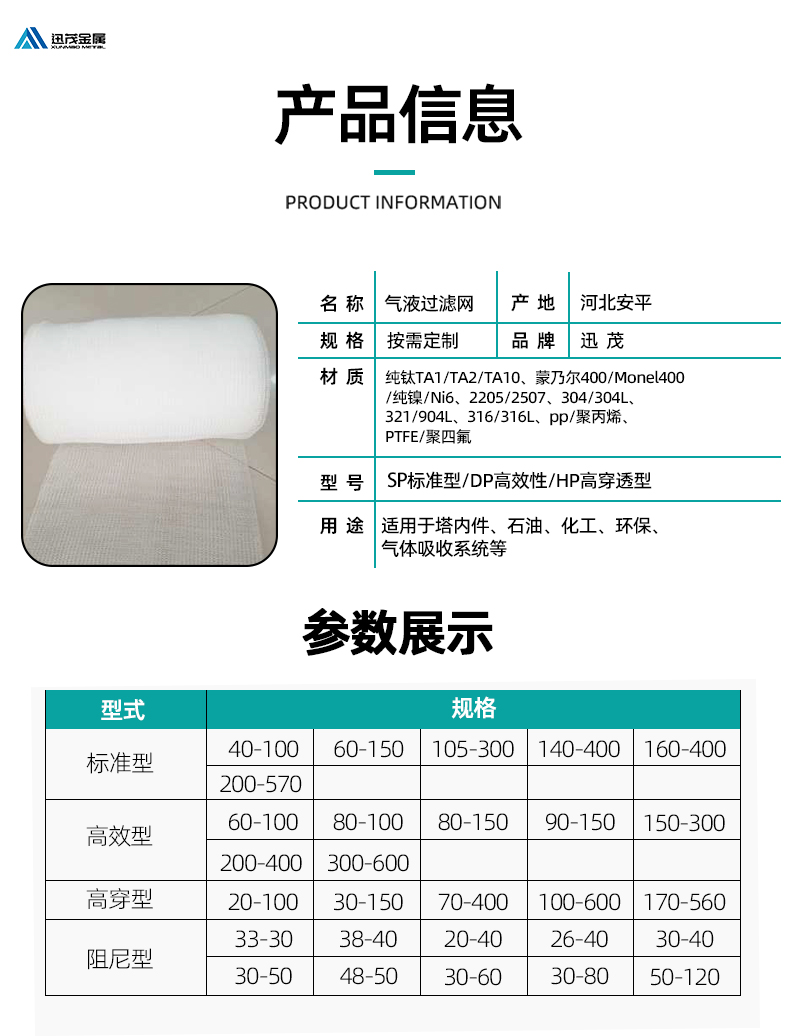 PP聚丙烯汽液过滤网高效过滤耐酸碱腐蚀塑料气液针织滤网