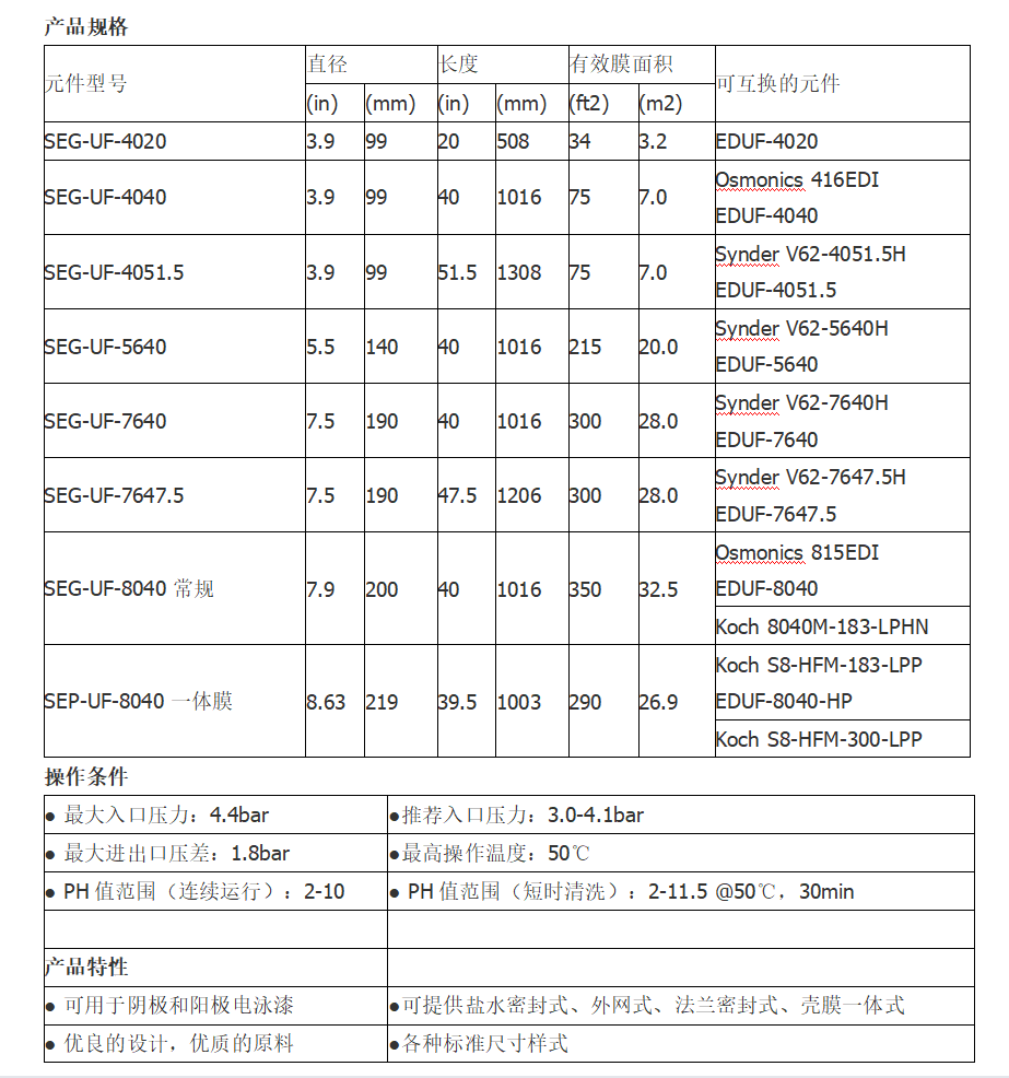 规格 | 2支8040卷式电泳漆超滤膜 | ||