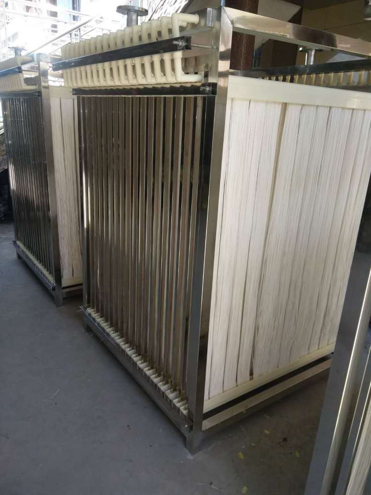 膜-生物反应器(MBR)膜堆是膜-生物反应器(MBR)的核心部分,是真正执行膜-生物反应器(MBR)截留过滤功能的成套装置,由聚偏氟乙烯(PVDF)中空纤维帘式膜组件、膜连接件、插槽、集水管、曝气管和膜机架等六部分组成。我公司经过长期实践,可专业设计和制造膜-生物反应器(MBR)膜堆。