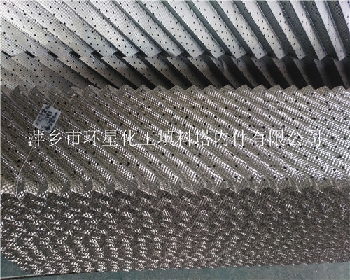 适当的增大开孔率,使得金属板波纹两侧面积湿润、汽液接触交换更加充分,有效的提高了填料的比表面积的利用率,因而使得具有较高的传质效率。