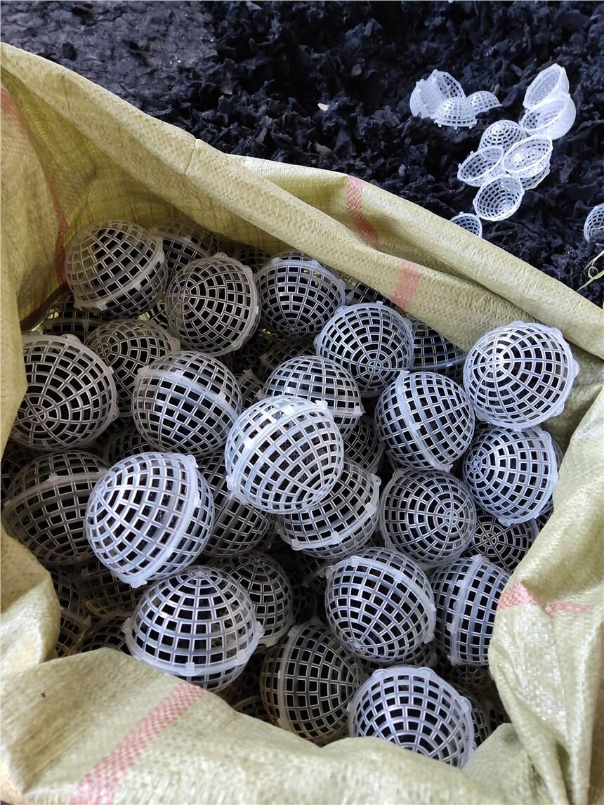 河南省博胜环境工程有限公司生产的多孔球形悬浮填料是对国内处理污水、生物膜法处理技术采用的多种填料中开发的最新系列产品。在污水的生化处理中具有全立体结构,比表面积大,直接投放,无须固定,易挂膜,不堵塞。该填料系列由聚丙烯材料注塑而成,分内外双层球体,外部为中空鱼网状球体,内部为旋转球体。主要起生物膜载体的作用,同时兼有截留悬浮物的作用,具有生物附着力强、比表面积大、孔隙率高、化学和生物稳定性好、经久耐用、不溶出有害物、 不引起二次污染、防紫外线、抗老化、亲水性能强等优点,是任何软性、半软性、组合、弹性填料无法实现的。