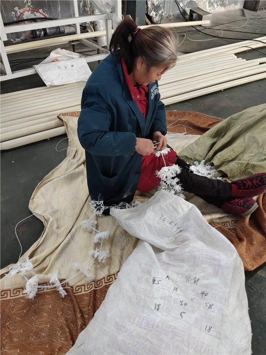 组合填料是在软性填料和半软性填料的基础上发展而成的,它兼有两者的优点。其结构是将塑料圆片压扣改成双圈大塑料环,将醛化纤维或涤纶丝压在环的环圈上,使纤维束均匀分布;内圈是雪花状塑料枝条,既能挂膜,又能有效切割气泡,提高氧的转移速率和利用率。使水气生物膜得到充分交换,使水中的有机物得到高效处理。