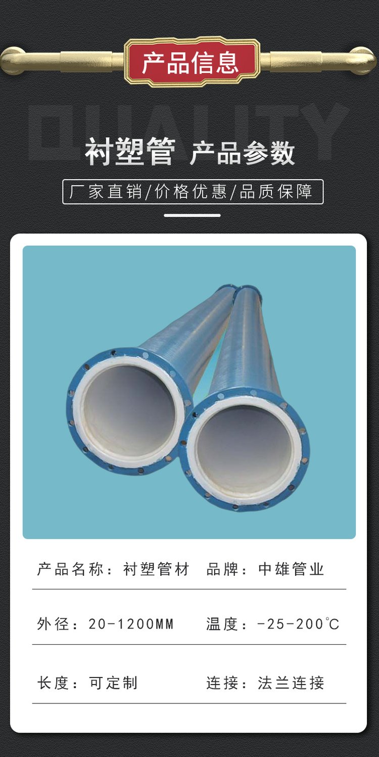 钢衬塑管道 钢塑管 水处理/化工防腐管 各口径规格齐全 中雄 DN50 品牌 | 中雄 | ||