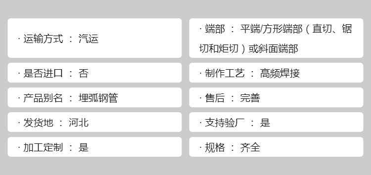 表面 | 轻度润滑、热浸镀锌、黑色涂漆、清漆涂层/防锈油、保护涂层(环氧树脂、熔接环氧树脂、3层PE) | ||