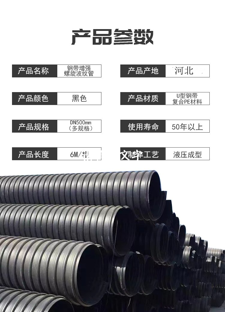 承插式HDPE钢带增强双壁波纹管腾达汇泰DHFK238具有抗压强度高