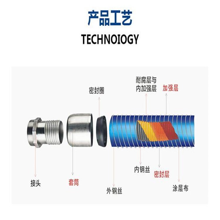 复合软管防静电柔性内外钢丝骨架耐溶剂化学软管耐酸碱耐腐蚀中美