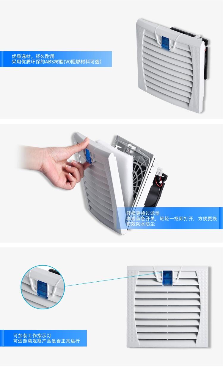 ⑤电动机与风机的传动方式好是直接连接,其次是用联轴器连接。配电柜散热风扇必须间接传动时,采用无缝的V带。