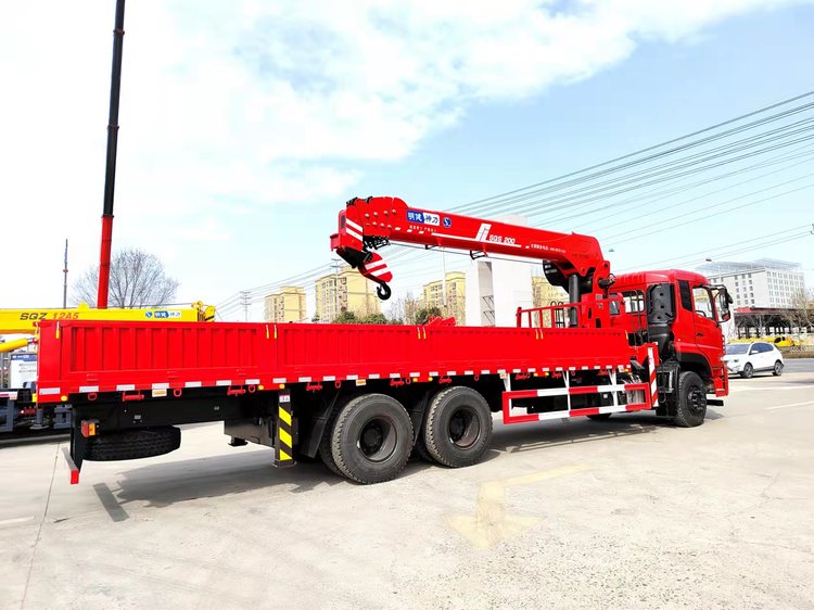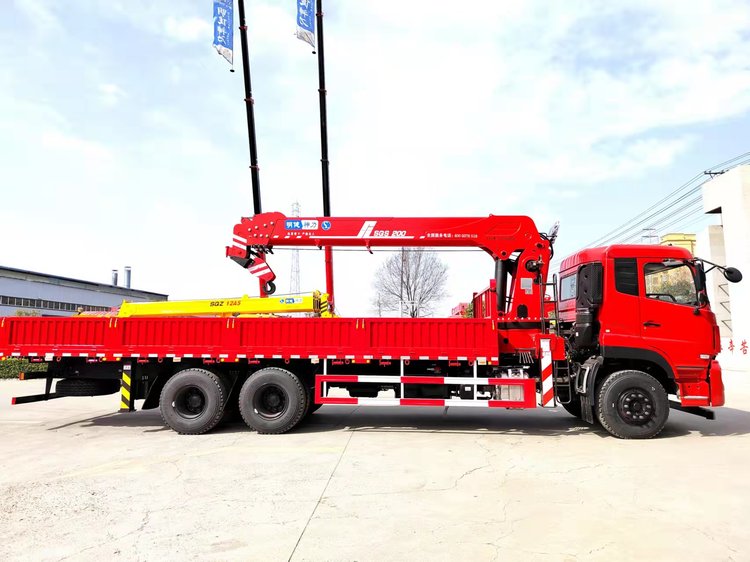 上装配置:12吨【明健神力】随车吊,12吨4节臂吊机举升高度19米,工作半径17米。12吨5节臂吊机举升高度21米,工作半径19米。上操作、 中操作、四方位操作,新型液压系统和液压配件,前方形支腿,后升级款加固型支腿