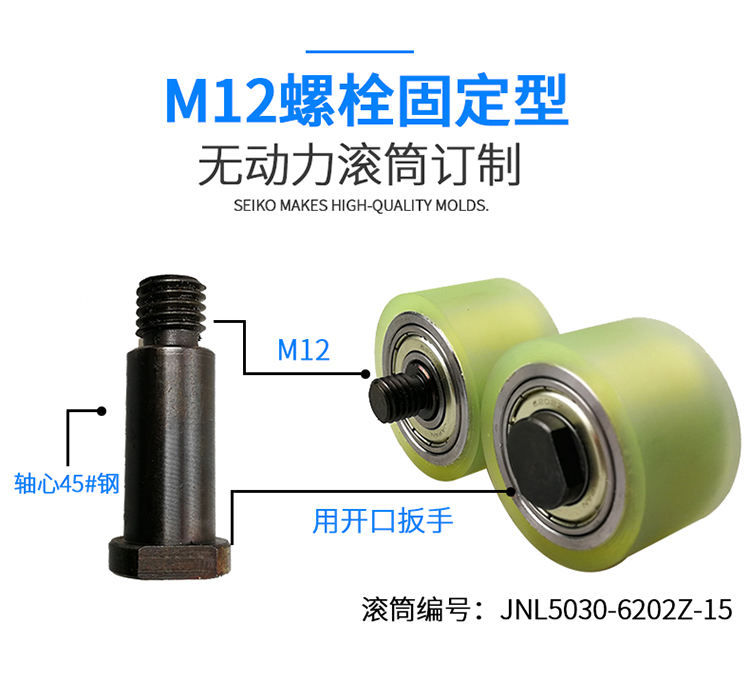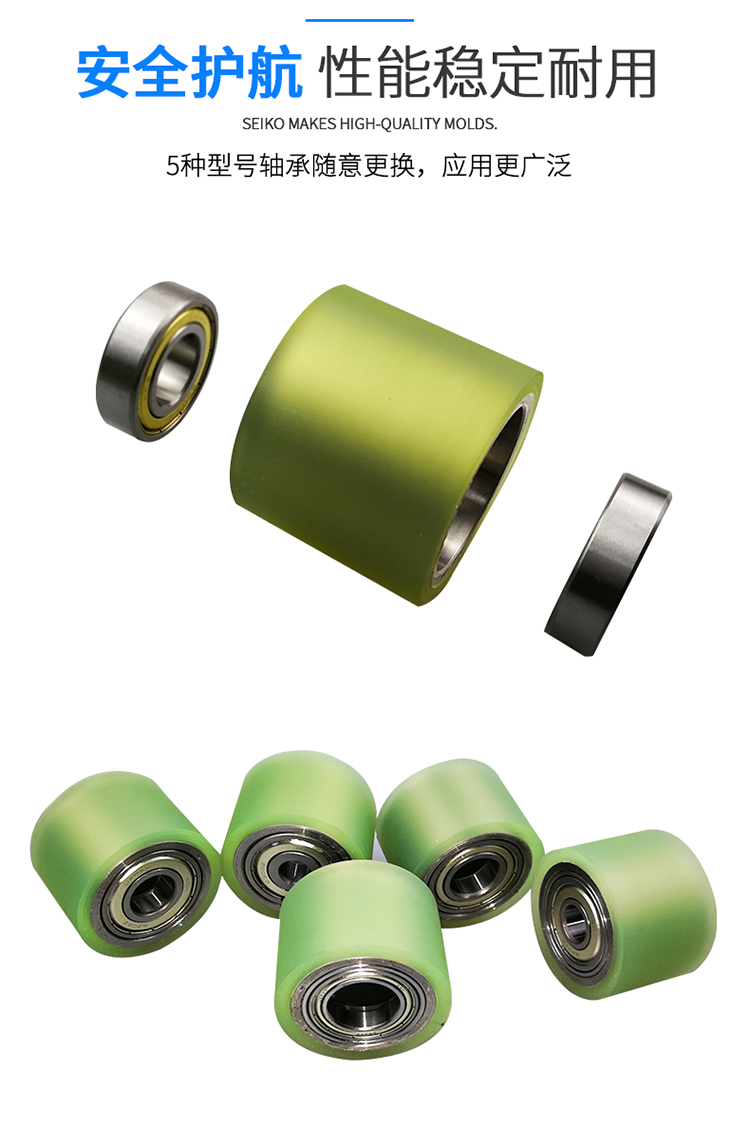 包胶轮外径50聚氨酯PU无动力滚筒双轴承静音滚轮耐磨托辊胶辊定做