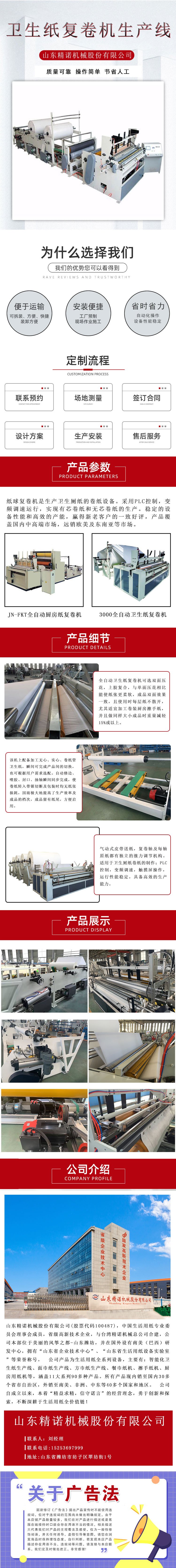 精诺三米卫生纸复卷机3000型卫生纸加工设备全自动卫生纸机器