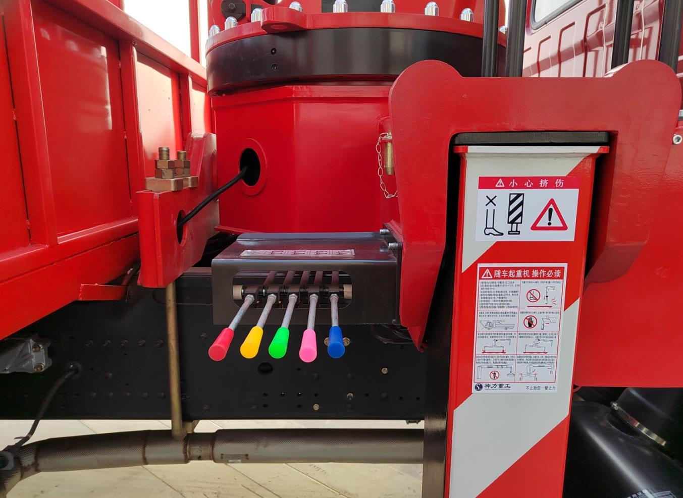 底盘配置:陕汽轩德翼6新锐版随车吊,玉柴270马力,法士特9档带同步器,四点悬浮驾驶室、自动恒温空调、多项调节气囊座椅、真皮多功能方向盘,7寸液晶显示屏,10寸多媒体显示屏带倒车雷达,镀铬出风口,中控锁,LED日间行车灯,LED示廓灯,全包围后视镜;6.5T前桥/11.5T后双桥;300mm(8 8 6)通体三层车架,铝合金油箱