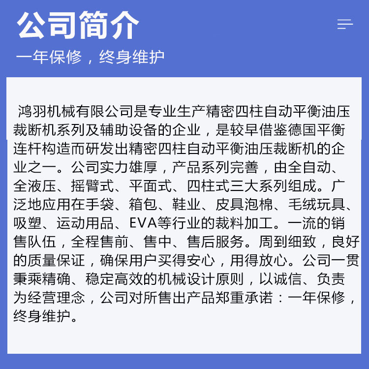 鸿羽1250*510mm玩具厂手袋专用液压裁床四柱裁断机30T