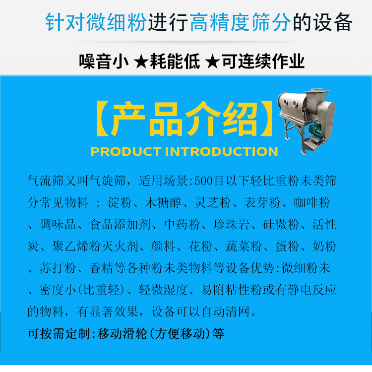 适用范围 | 金粉、陶土粉、山粉、果疏粉、氢氧化钙粉、农药粉、魔芋粉、荧光粉、木粉、面粉、环氧树脂粉等 | ||