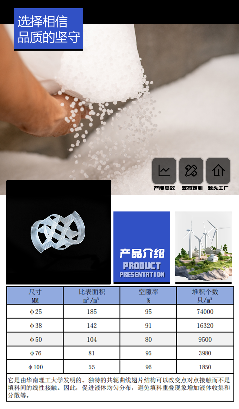 PP共轭环 φ38/50 聚丙烯散堆填料 比表面积大 方兴供应 产品名称 | 共轭环填料 | ||