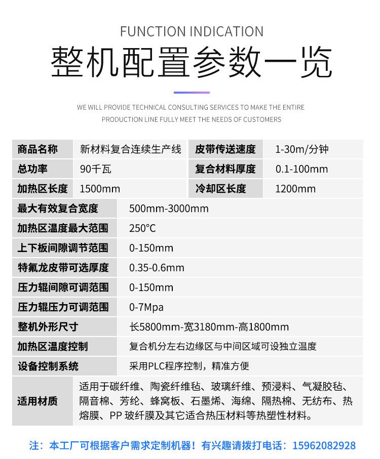 适用面料 | 隔音棉、铝箔、膜及其它适合热压复合材料 | ||
