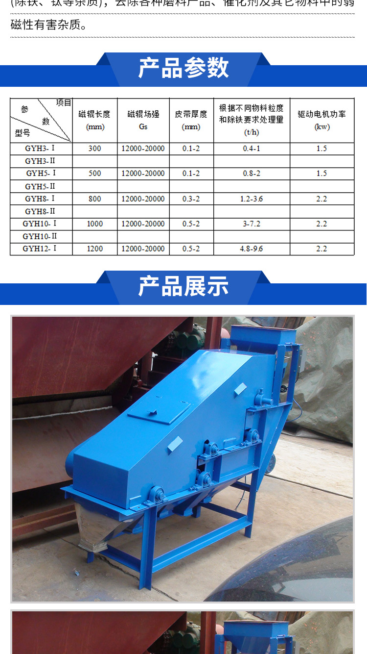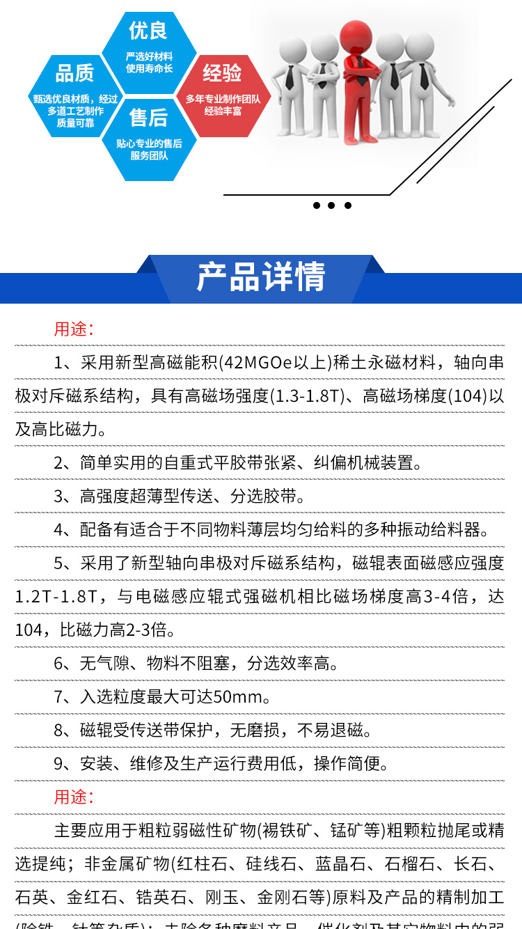 用途 | 细颗粒铁杂志去除,粗颗粒抛尾或精选提纯 | ||