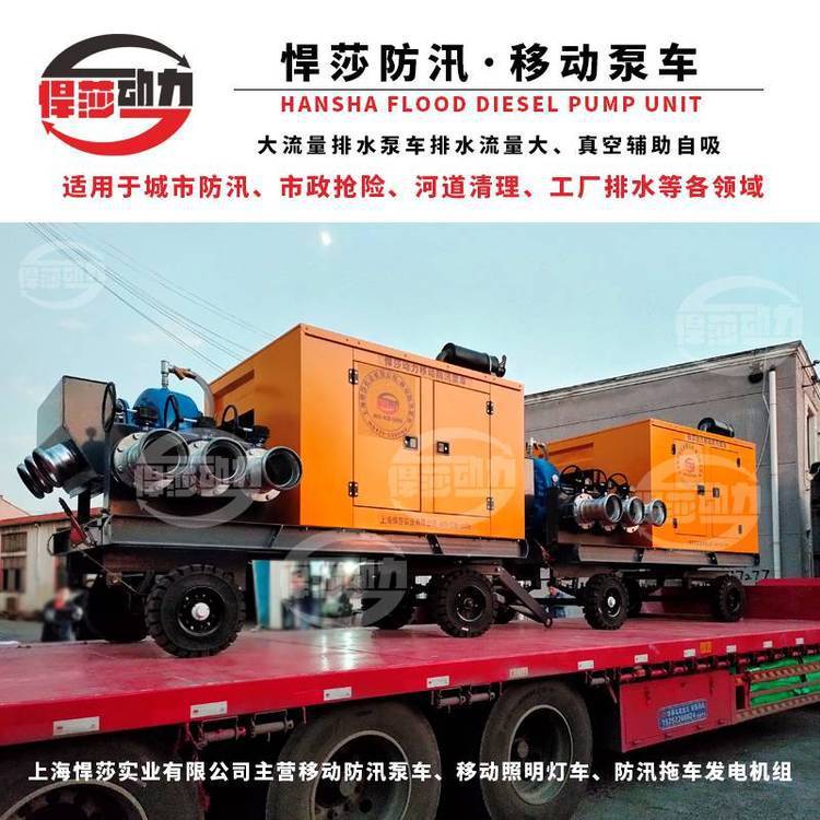 悍莎移动自吸式移动泵车主要用于市政排污及防涝工程、农业灌溉,工业排水、排污等 领域。根据类型分可分为固定式、二轮拖车式等。