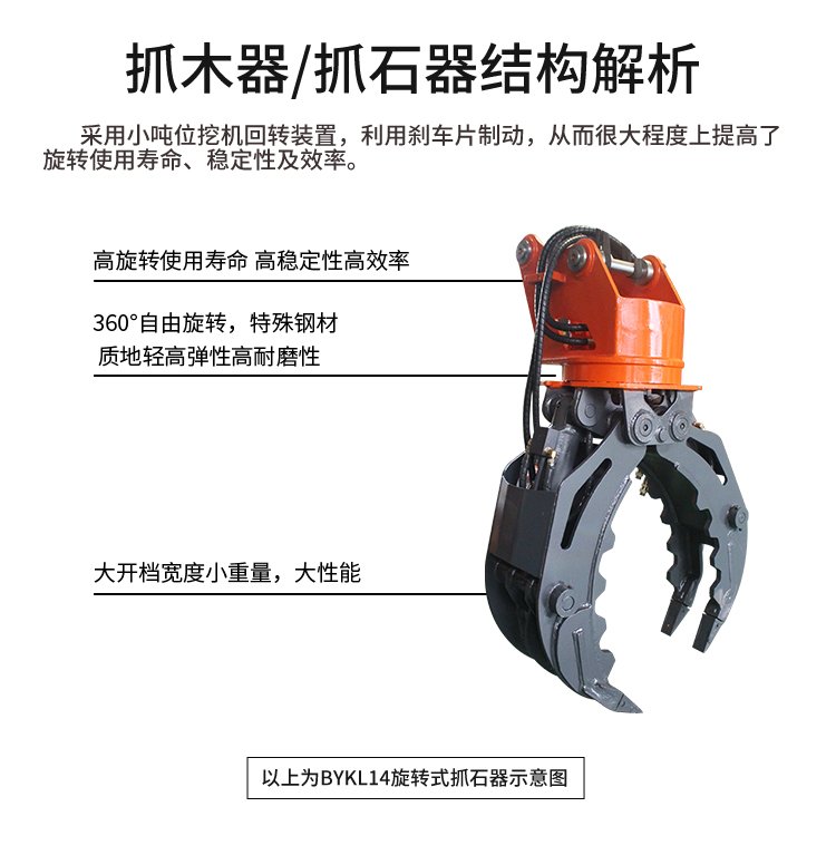 挖掘机抓木/石头废钢机器 转速稳定 北奕 用途范围广 设计合理 品牌 | 北奕 | ||