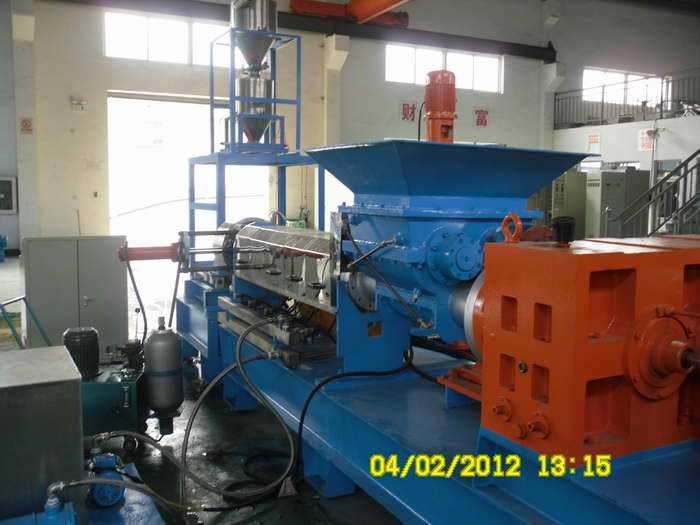 二,橡胶母料造粒机,橡胶母粒造粒设备(规格)分散效果优异,主机电流小,节能环保。此机台主用于橡胶母料造粒机,橡胶母粒造粒设备(规格)功能母粒,热收缩料,包括主机,锥双强制入料,模面热切等系统将密炼机撹好的原料经锥双挤入造粒机内,后经单螺杆挤出后切成粒子(13616289487)。