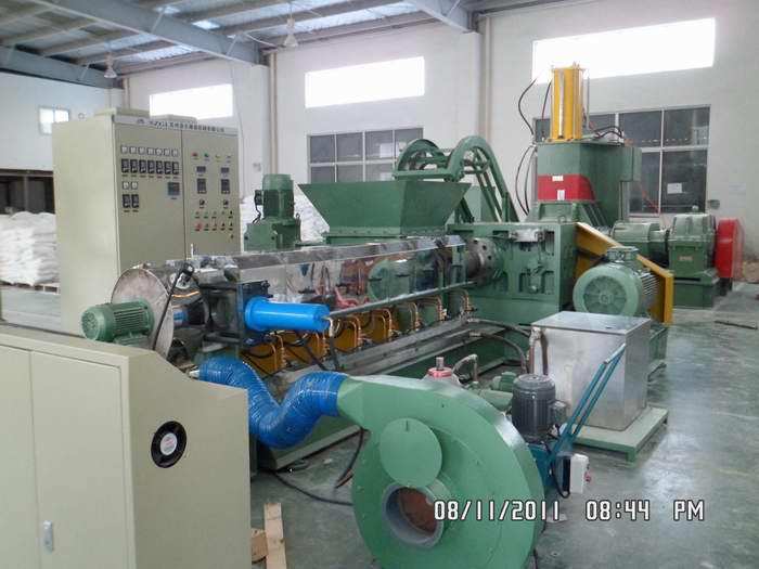 碳酸钙填充母料造粒机造粒工艺:密炼机----提升机------锥双喂料机---------单螺杆造粒机-------- -对吹热切机头-----一级旋风分离器---------二级旋风分离器-------加长风冷振动筛------成品料仓; 碳酸钙高填充母粒造粒机 PP碳酸钙造粒机 PE碳酸钙造粒机 EVA碳酸钙造粒机 PP碳酸钙填充母料造粒机 PE碳酸钙填充母料造粒机 EVA碳酸钙填充母料造粒机