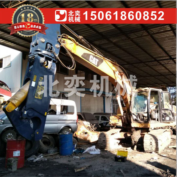 北奕机械不断对工程机械属具中破拆回收设备的进行研发,如今,全液压鹰嘴钳已经面市。此类剪刀适用在不同的操作中,包括钢结构的破拆,汽车拆解 报废汽车 报废钢筋 废料钢的处理等应用中,能切割铁制材料,钢材,罐,管子等,鹰嘴钳独特的设计和创新方式保证了高效运作和强大的切割力,较普通鹰嘴剪性能超出15%。