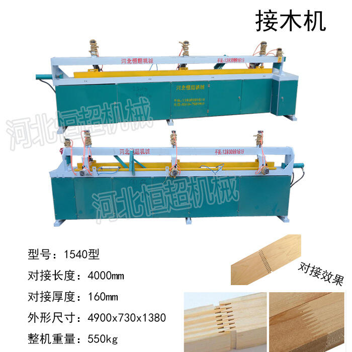 概述:1540型对接机主要用于建筑工地木方对接,把有梳齿机梳完齿的木方放到此机器平台上,经过压紧,挤压把木方的齿部对接完毕拿出就行。其操作简单,维修简便,是建筑工地加工木方的传统机型,